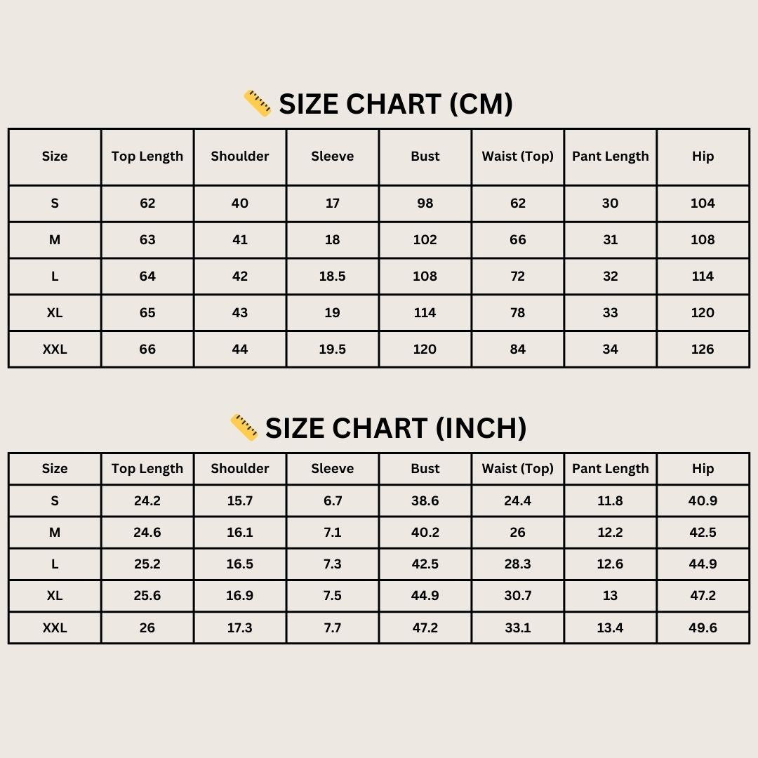 Size | Top length | Shoulder | Sleeve | Bust | Waist | Pant length | Hip |